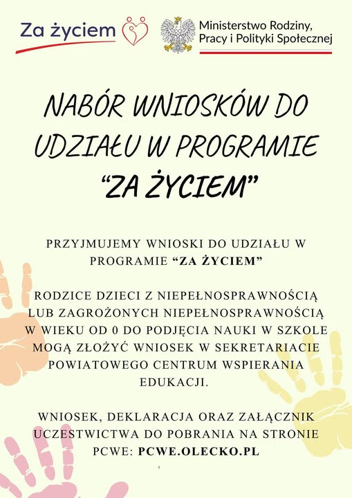 Powiatowe Centrum Wspierania Edukacji w Olecku prowadzi nabór do udziału w programie „Za życiem”.